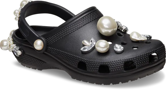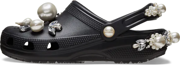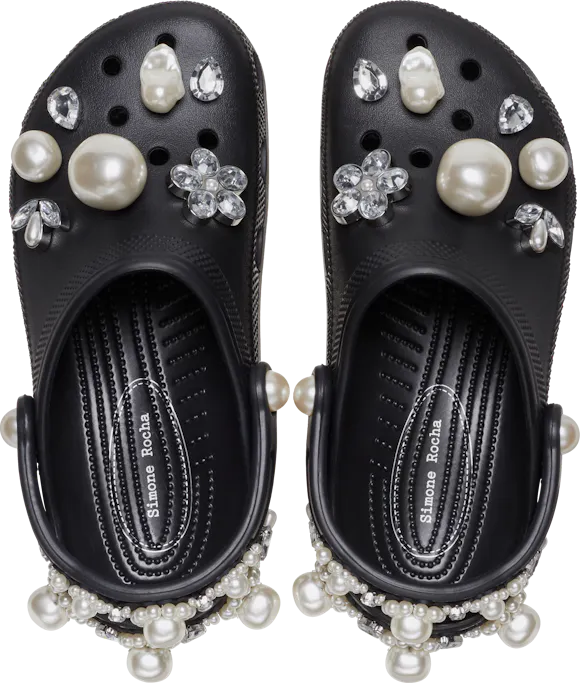 The Simone Rocha X Crocs Classic Clogs are a perfect balance of glamour and comfort, the designers at Crocs and Simone Rocha have created a truly fashion forward clog. A dazzling array of gems encircle the back strap and adorn the front upper, with exclusive Jibbitz™ charms, creating a stunning tapestry of shine with every step.