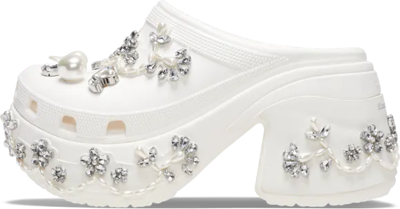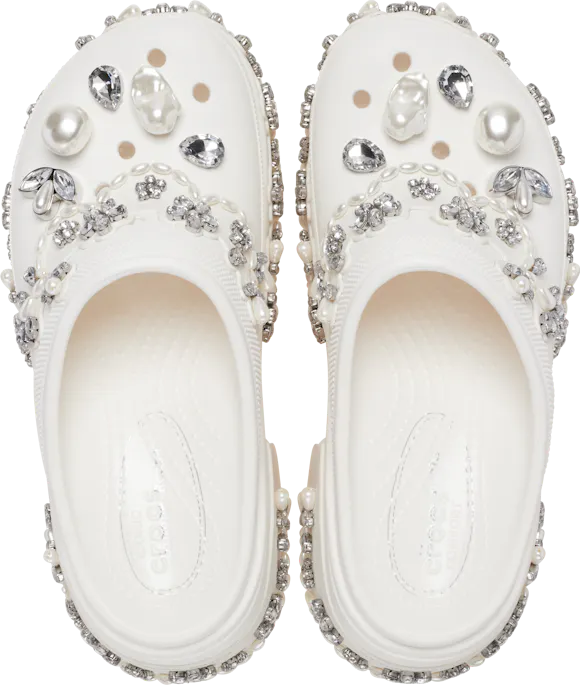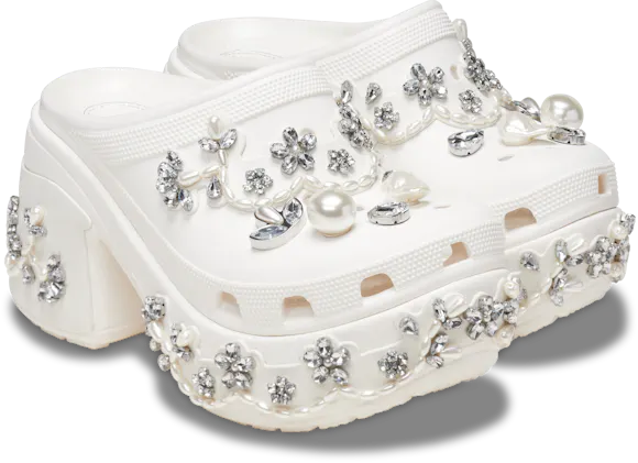 The Simone Rocha x Crocs Siren Clogs are an elevated statement piece for any collection, featuring pearl and gemstone ornamentation with exclusive Jibbitz™ charms. Designed with thoughtful attention to every detail, Simone Rocha has boldly left her mark on these limited-edition Siren clogs, an essential piece for any collector’s closet.