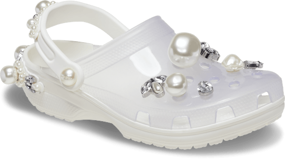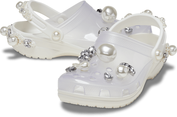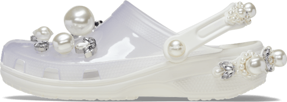 The Simone Rocha X Crocs Classic Clogs are a perfect balance of glamour and comfort, the designers at Crocs and Simone Rocha have created a truly fashion forward clog. A dazzling array of gems encircle the back strap and adorn the front upper, with exclusive Jibbitz™ charms, creating a stunning tapestry of shine with every step.
