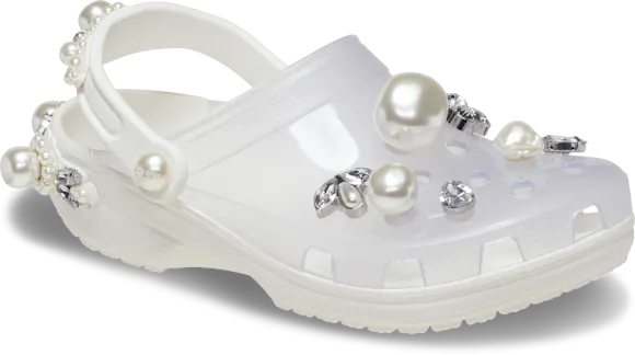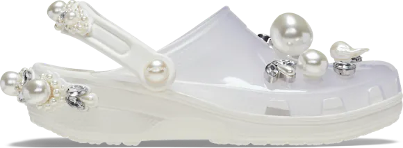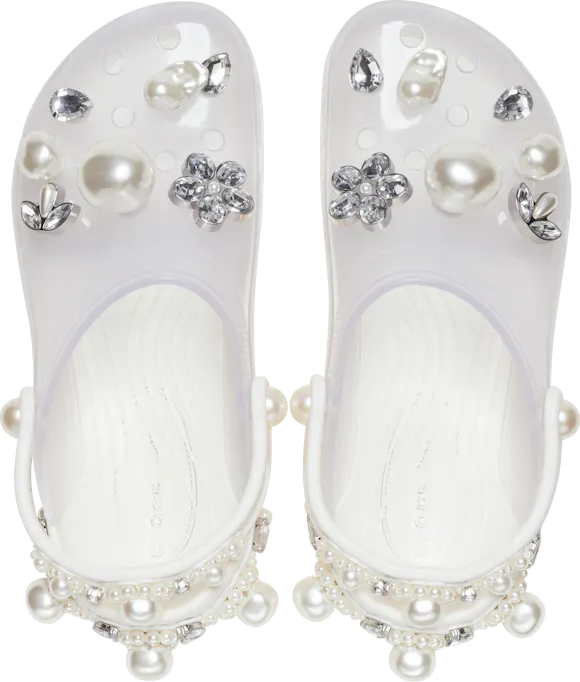 The Simone Rocha X Crocs Classic Clogs are a perfect balance of glamour and comfort, the designers at Crocs and Simone Rocha have created a truly fashion forward clog. A dazzling array of gems encircle the back strap and adorn the front upper, with exclusive Jibbitz™ charms, creating a stunning tapestry of shine with every step.