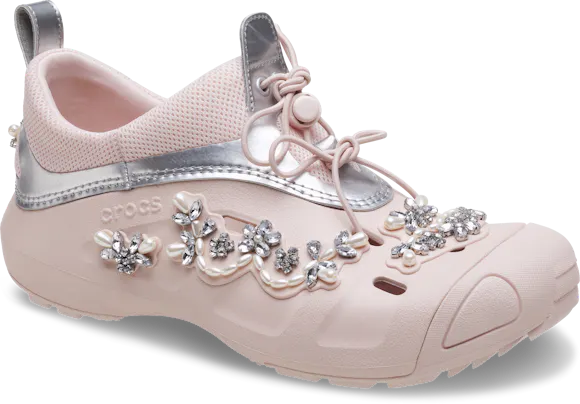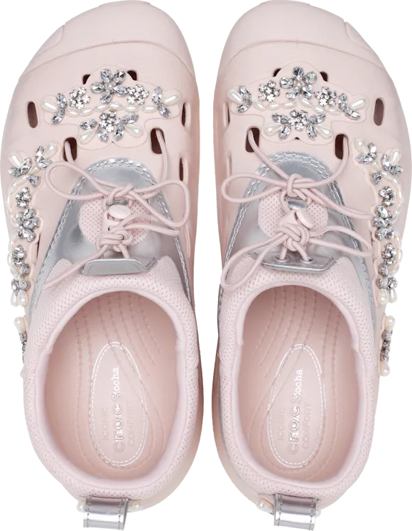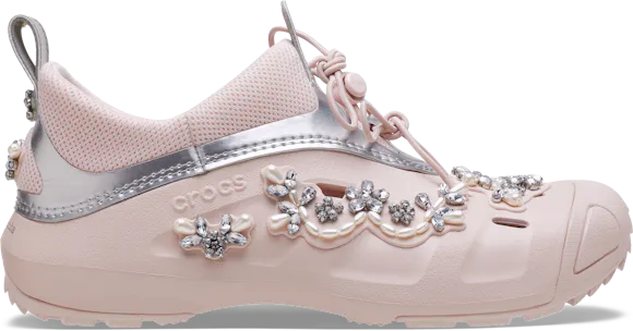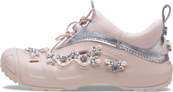 The Simone Rocha x Crocs Quick Trail Clogs are perfect for those who appreciate a blend of opulence and practicality. Each pair is adorned in jewels and made from high-quality, durable materials, ensuring both longevity and ease of wear. The cushioned footbed offers support in all the right places, making these clogs versatile for leisure and more active pursuits.